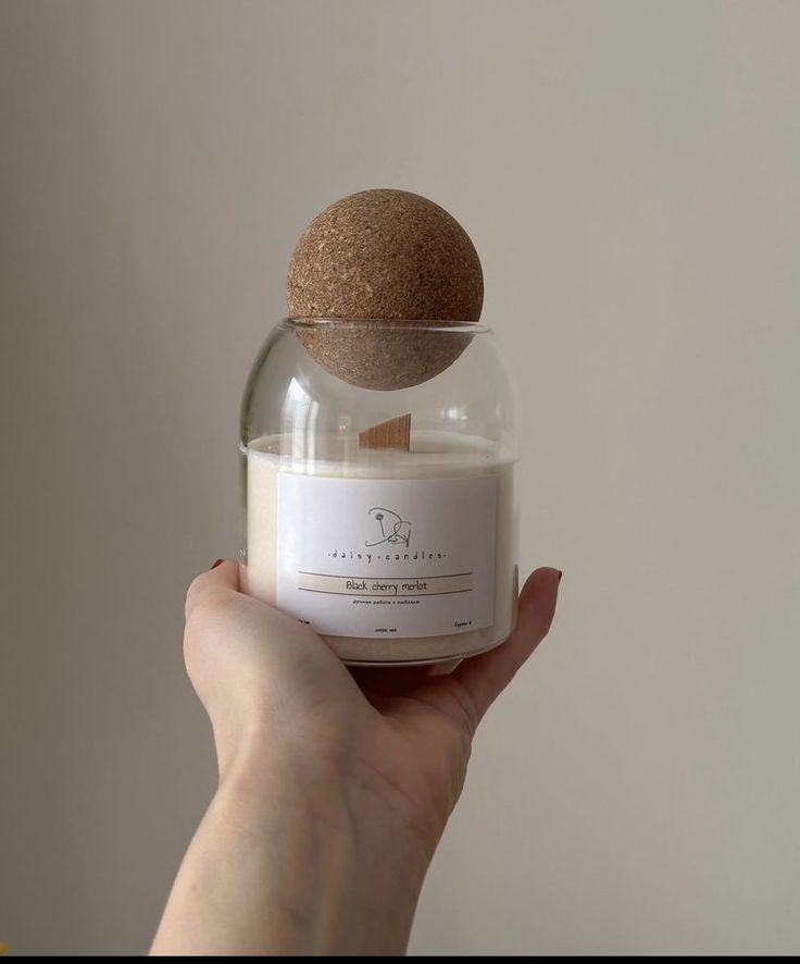 Glass jar with wood ball 500 ml وعاء زجاجي مع غطاء خشب على شكل طابه